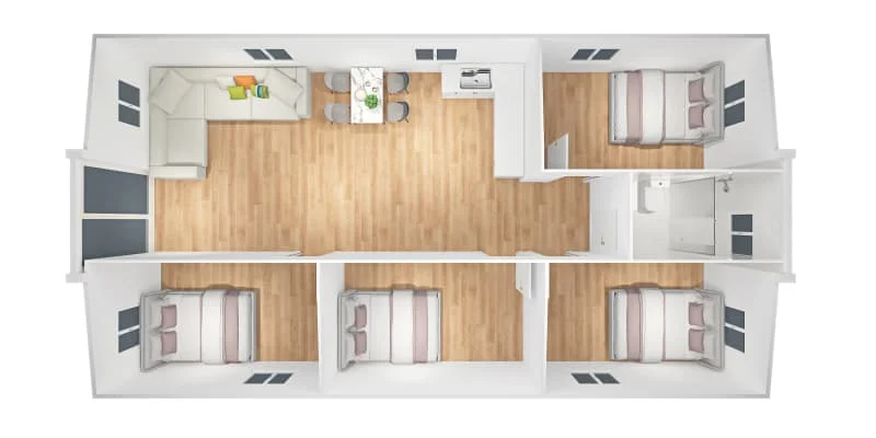 Diseño de distribución de casas portátiles expandibles de 40 pies